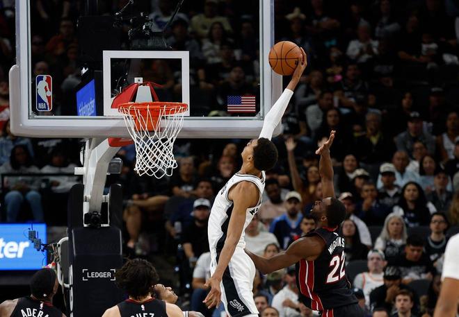 后场核心福克斯因伤缺席赛季初的比赛,但是文班亚马带领马刺打出了完美开局。上一场对阵猛龙,文班亚马竟然没有一次三分球出手。这一战对阵热火,文班亚马5次出手三分球。值得一提的是,文班亚马在菜鸟赛季场均出手三分球5.5次,而在上赛季场均出手三分球8.8次。